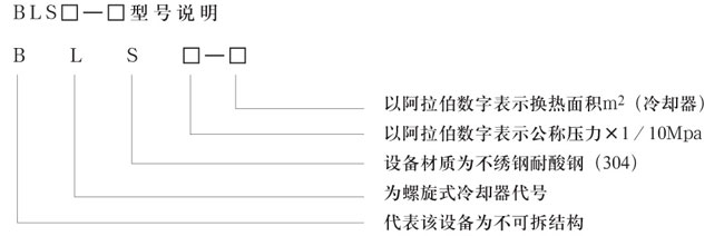 例:BLS6-160為不可拆式螺旋板冷卻器材質為不銹鋼耐酸設計壓力為0.6Mpa,換熱面積為16m2(冷卻容量160)。