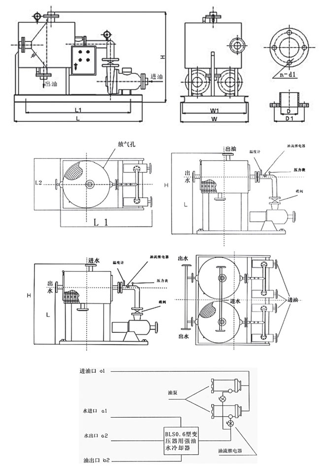 一、BLS6型變壓器用強油水冷卻器系列主要參數以及安裝尺寸